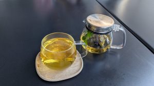 打ち上げは、おしゃれなカフェでおいしいお茶を。カモミールミントティー、最高でした。